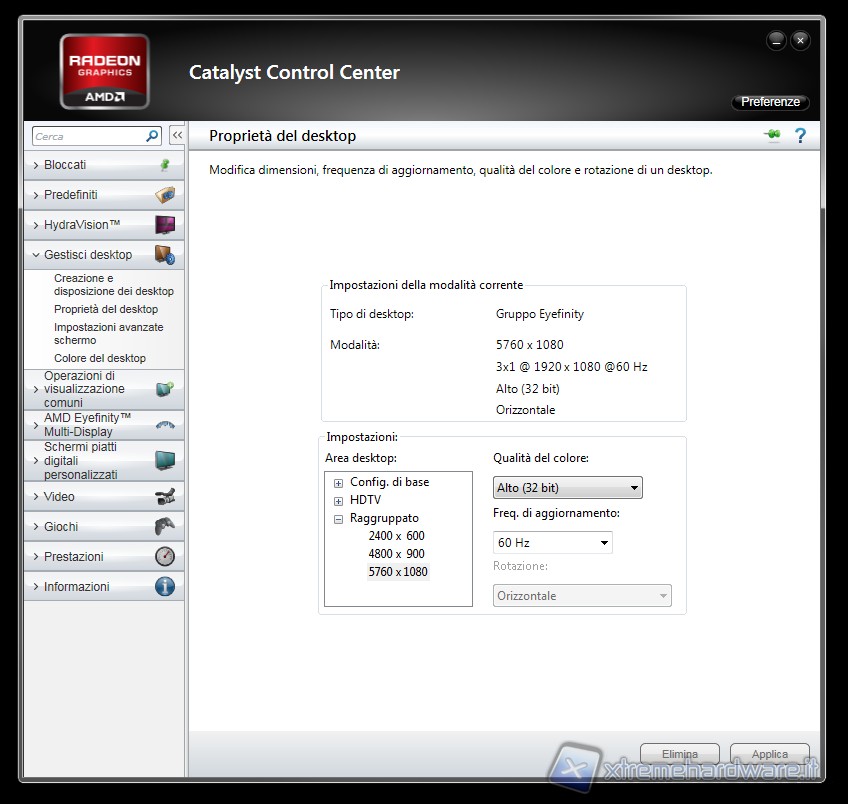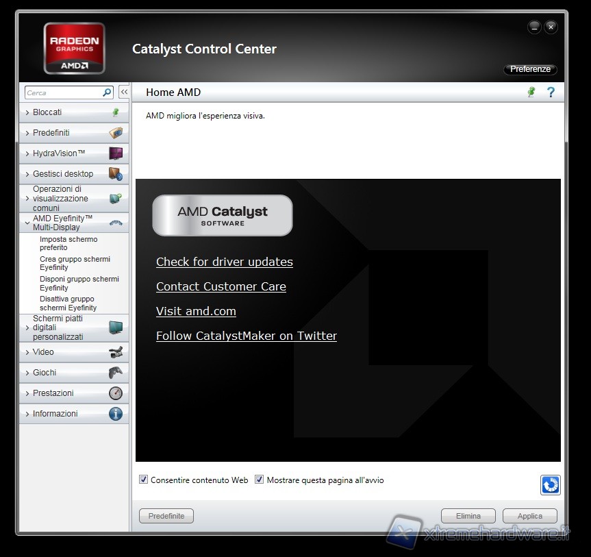 Una volta effettuati gli opportuni collegamenti, andiamo ad accedere direttamente al Catalyst Control Center di AMD.